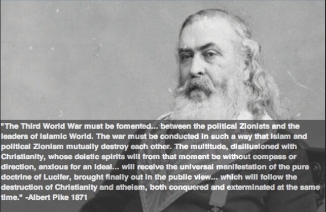 “The Third World War must be fomented by taking advantage of the differences caused by the “agentur” of the “Illuminati” between the political Zionists and the leaders of Islamic World. The war must be conducted in such a way that Islam (the Moslem Arabic World) and political Zionism (the State of Israel) mutually destroy each other. Meanwhile the other nations, once more divided on this issue will be constrained to fight to the point of complete physical, moral, spiritual and economical exhaustion…We shall unleash the Nihilists and the atheists, and we shall provoke a formidable social cataclysm which in all its horror will show clearly to the nations the effect of absolute atheism, origin of savagery and of the most bloody turmoil. Then everywhere, the citizens, obliged to defend themselves against the world minority of revolutionaries, will exterminate those destroyers of civilization, and the multitude, disillusioned with Christianity, whose deistic spirits will from that moment be without compass or direction, anxious for an ideal, but without knowing where to render its adoration, will receive the true light through the universal manifestation of the pure doctrine of Lucifer, brought finally out in the public view. This manifestation will result from the general reactionary movement which will follow the destruction of Christianity and atheism, both conquered and exterminated at the same time.”