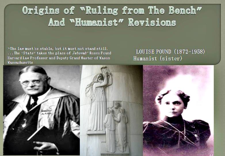 Roscoe Pound and sister Louise Pound. Roscoe elevated quickly to Supreme Court Judge and rose to 33rd Degree Honorary Mason. Louise attended college in Germany and wrote and lectured on Humanism after returning. While serving in MA as Supreme Court Judge Pound stated: