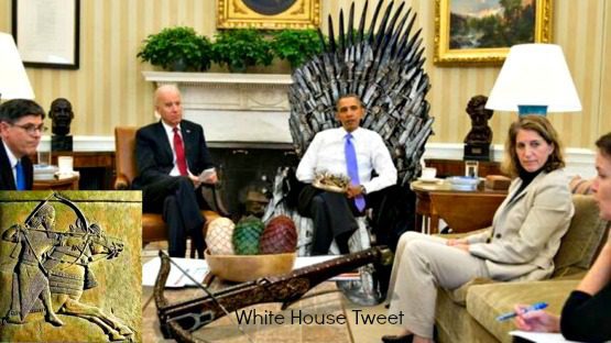 White House tweets Picture of Obama Sitting on Throne With Crossbow – Nimrod the Mighty Hunter. Is White House run by Judaisms mystical Cabalists ? Most pictures of Nimrod show him as black man
