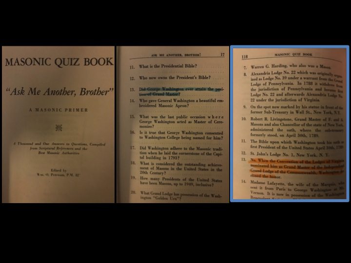Masonic Handbook admitted in 1956 George Washington was offered title of “Grand Master” and refused.